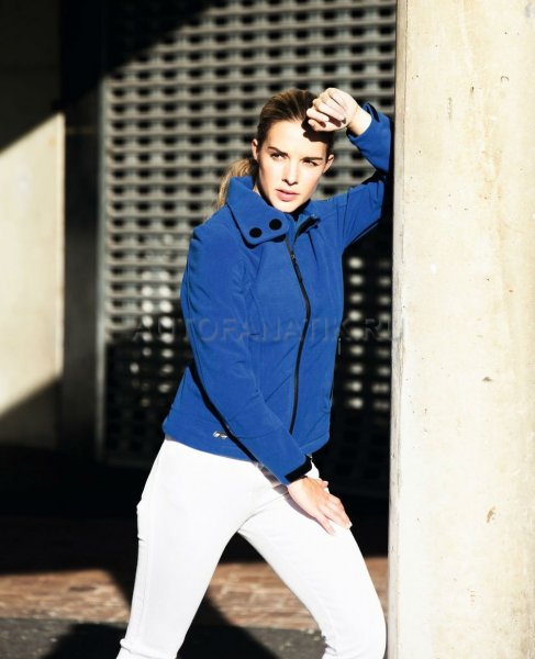 Женская флисовая куртка, ветронепроницаемая и, в тоже время, хорошо вентилируемая, благодаря особой системе мембран. Спортивный фасон с высоким воротником, разделена швами спереди и на спине. Вставки по бокам и на рукавах, потайная застёжка спереди, воротник на липучке. Спереди 2 кармана на молнии, ширина рукава регулируется липучкой, нижняя кайма на резиновыми шнурках металлическая заклепка с логотипом R на кромке куртки и рукавах, замки молний и липучки выполнены в форме стрелки тахометра. Цвет: ярко-синий. Материал: полиэстр 100%.