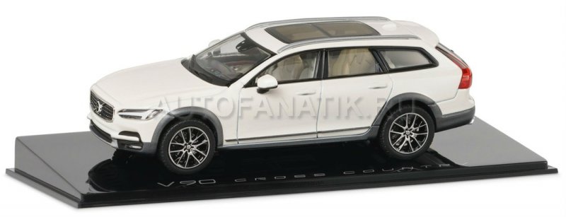 Вершина скандинавского современного автомобильного дизайна - коллекционная модель "лифтованного" (приподнятого) универсала Volvo V90 Cross Country в комплекте с подставкой. Цвет: белый, заводское название цвета - "Crystal White". Масштаб: 1:43.